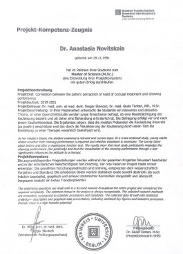Offline consultation in clinic. We get to know each other personally, I provide you with initial diagnostic procedures (palpation of muscles and joints, photometry, detailed examination of the oral cavity). We discuss your complaints and treatment requests. I prescribe treatment plan and stages of the examination in your specific situation. I will choose the necessary X-ray examinations